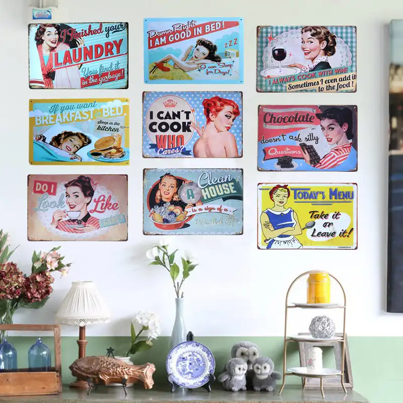 Pretty Sexy Women Metal Signs Cook Laundry Breakfast Chocolate