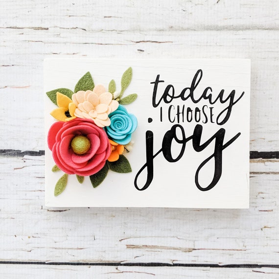 Today I Choose Joy Sign With Felt Flowers Etsy