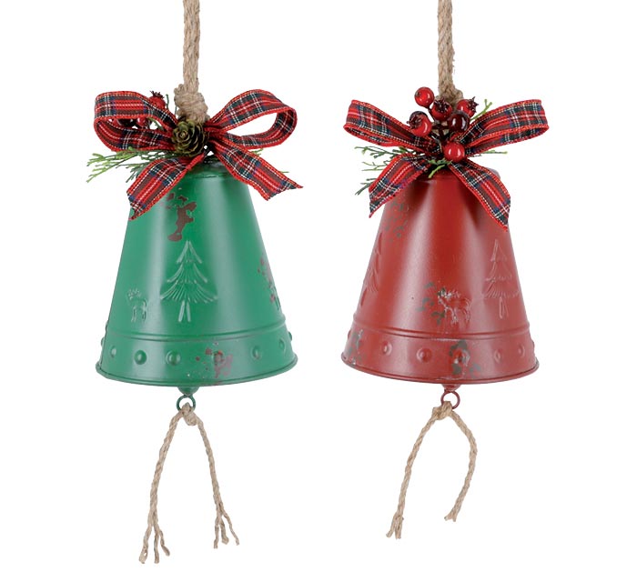 Distressed Metal Holiday Bell With Bow Christmas Bell Ornaments