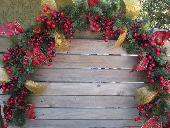 6 Christmas Berry Garland Christmas Red Gold Greenery Etsy
