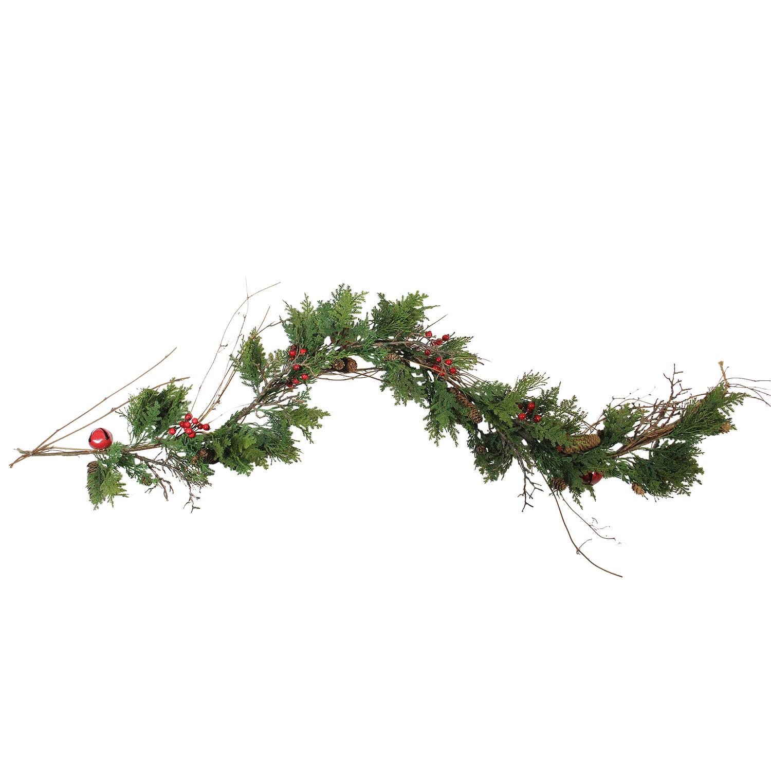 6 Red Bells Berries And Pine Cone Artificial Christmas Garland