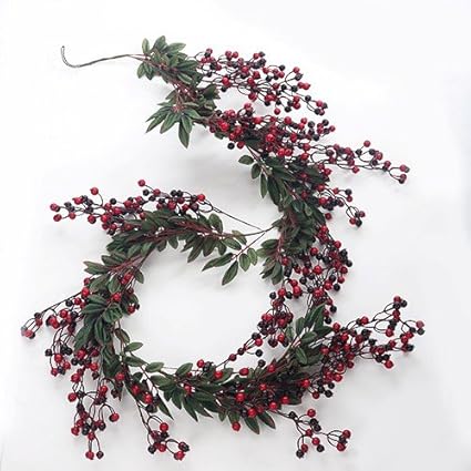 Yqing 6ft Red Berry Christmas Garland Flexible Artificial Berry