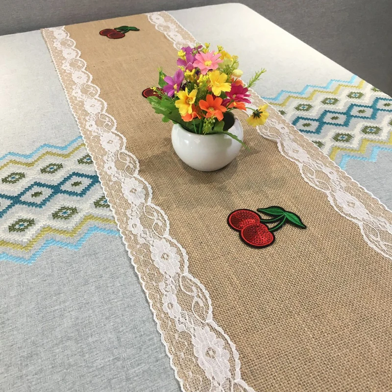 Burlap Table Runners With Lace Cheap Rustic Theme Wedding Banquet
