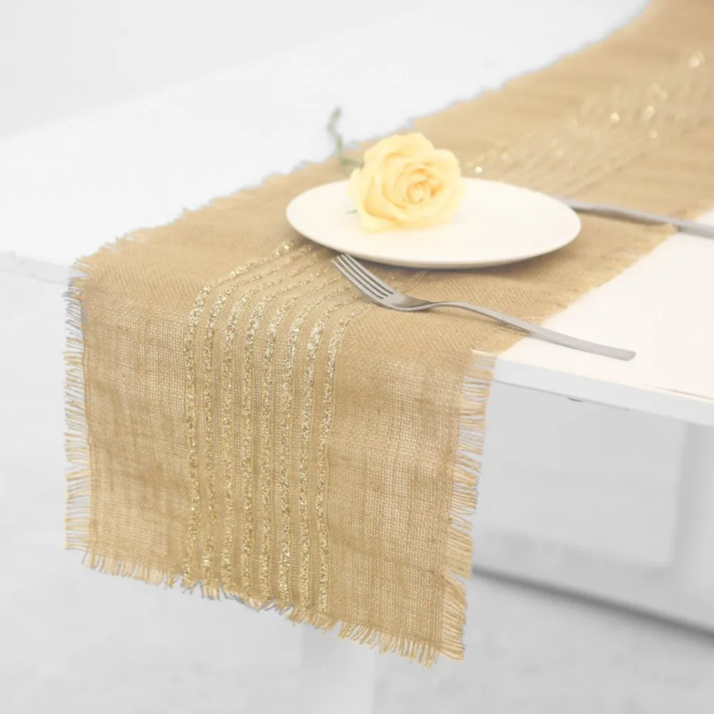 Burlap Table Runner Sparkly Glitter Gold Striped Jute Hessian