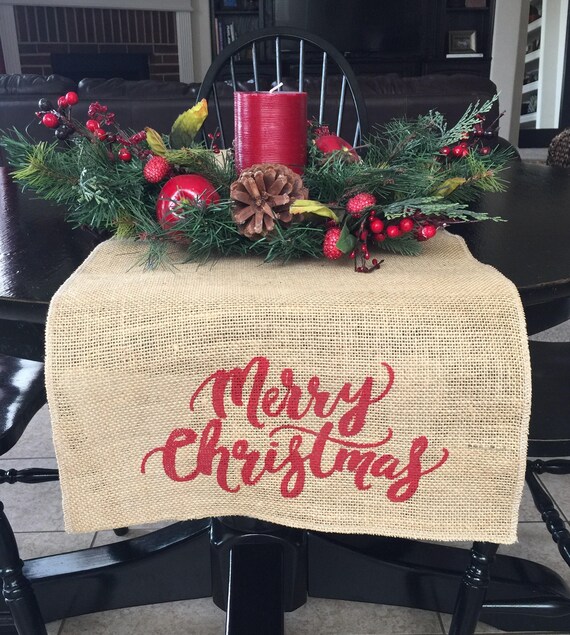 Merry Christmas Table Runner Burlap Table Runner Table Etsy