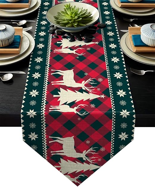 Livecity Double Side Checkered Burlap Table Runner Flag Christmas