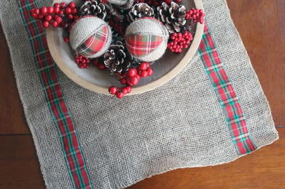 Christmas Burlap And Plaid Table Runner Diyideacenter Com