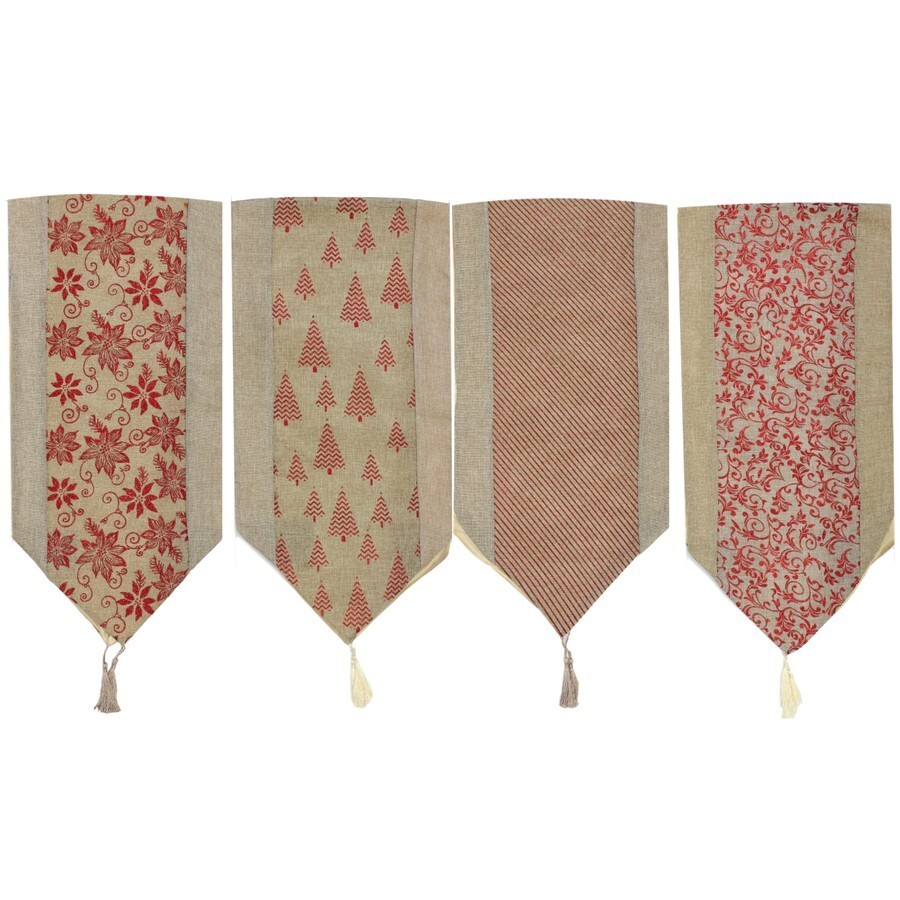 Christmas Table Runner Burlap Glitter Printed 13 X75 1pc Pack
