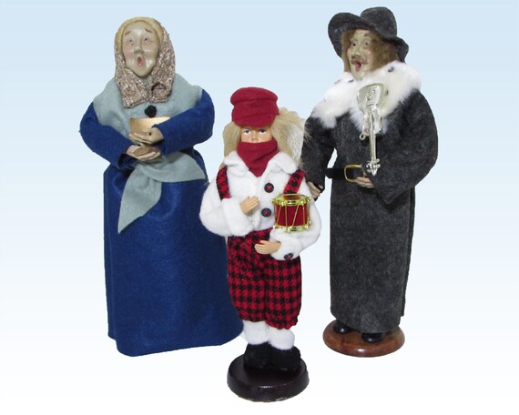 Christmas Caroler Doll Family 3 Figurine Set Man Violin Boy Etsy