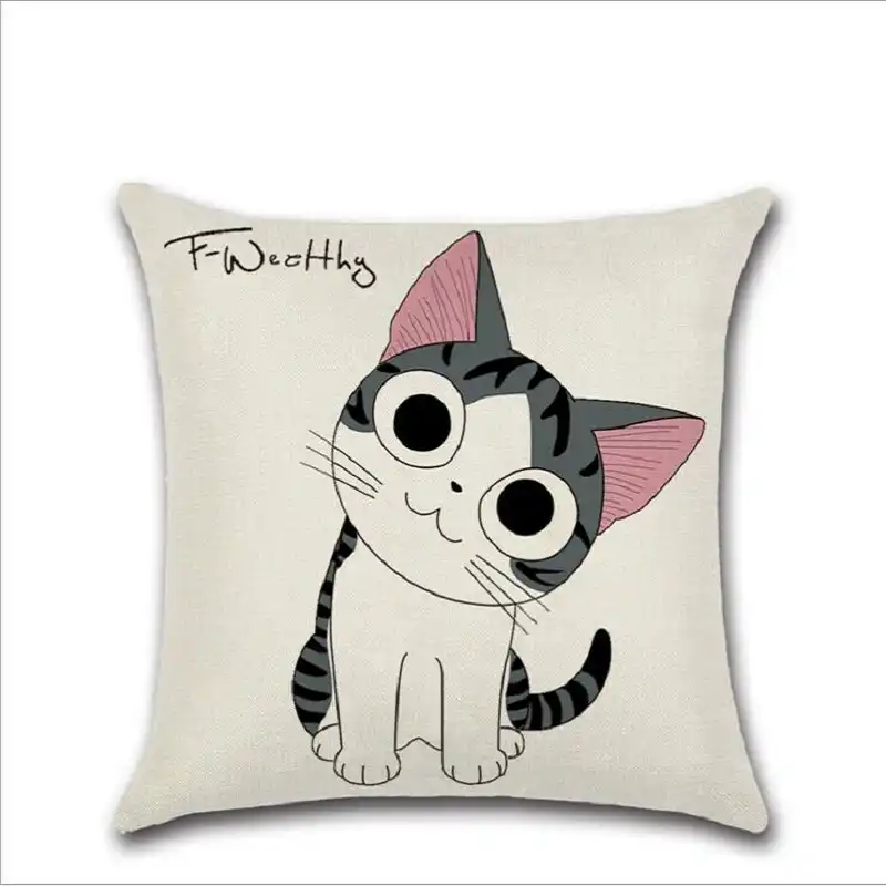 Flax Fabric Pillow Case Christmas Pillow Case 45x45cm Cat Pillow