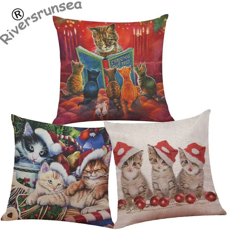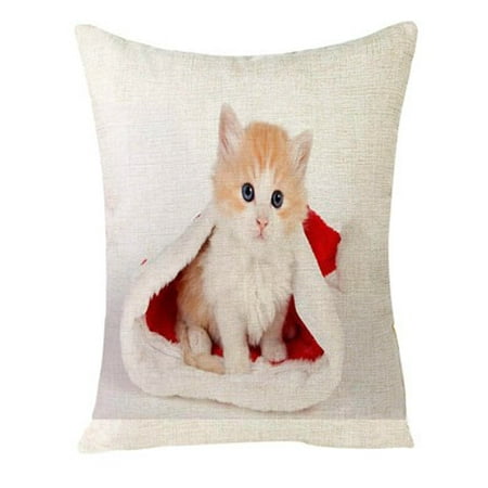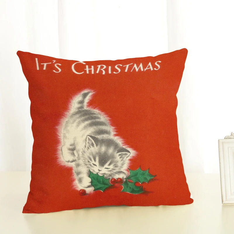 18 Cotton Linen Printing Christmas Cat Home Decor Pillow Case