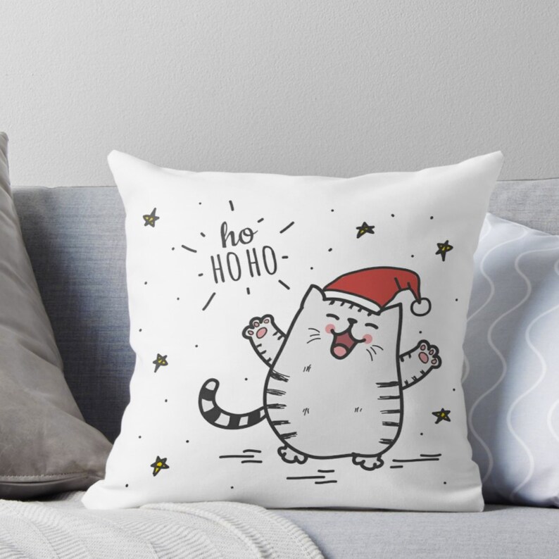 Cute Hand Drawn Christmas Cat Pillow By Mei Yu Zazzle Com