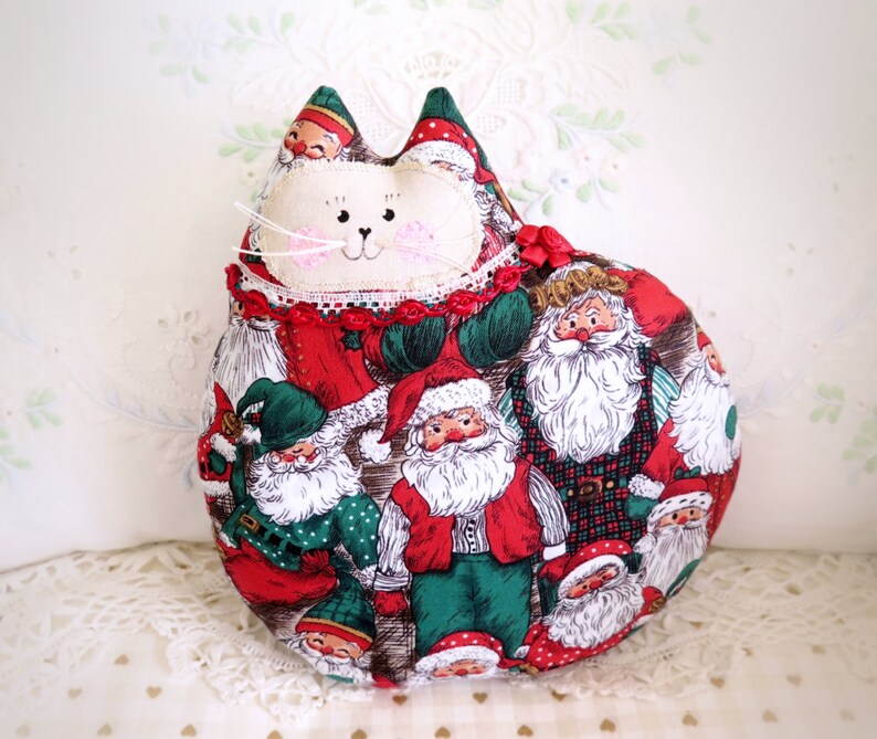 Christmas Cat Pillow Christmas Cat Doll 7 Santa Print Etsy
