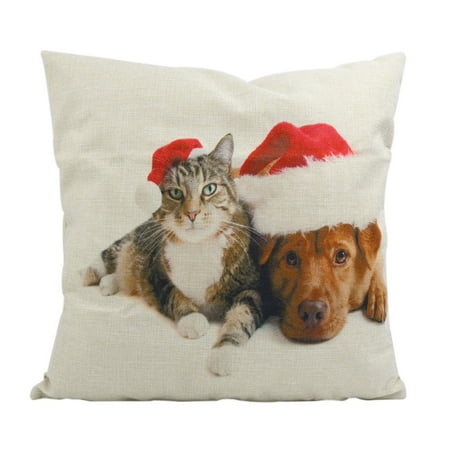 Fashion Christmas Cats Dogs Pattern Pillow Case Cushion Cover Home