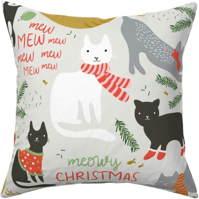 Amazon Com Roostery Throw Pillow Christmas Cat Merry Holiday