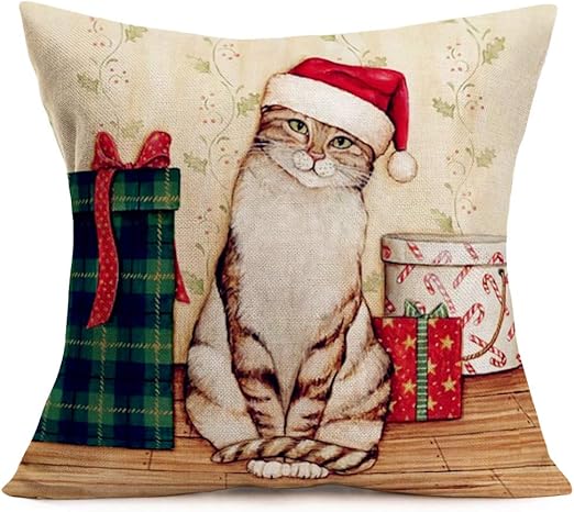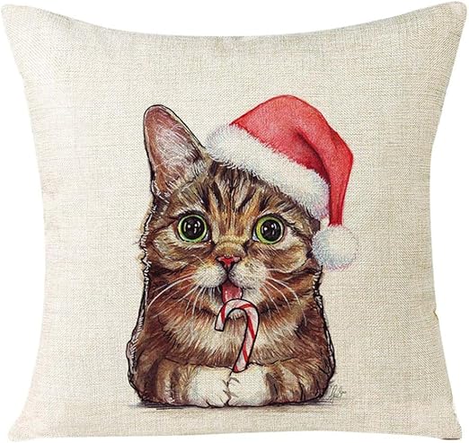 18 Christmas Cat Cotton Linen Pillow Case Throw Cushion Cover