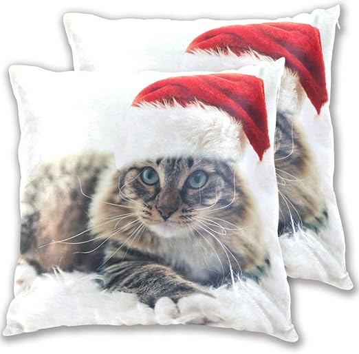 Amazon Com Christmas Cat Pillow Case Set Of 2 Cushion Covers
