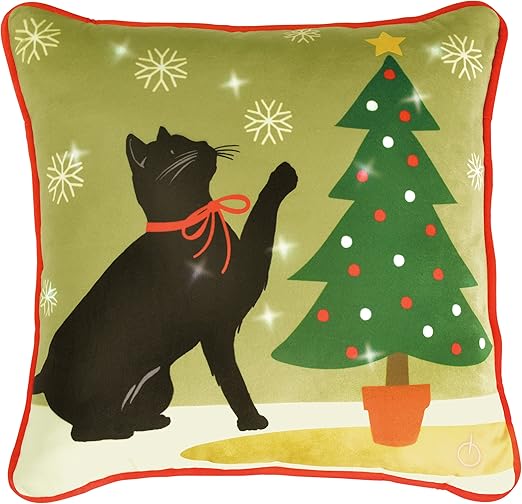 Amazon Com Lite Me Up Christmas Cat Led Light Up Throw Pillow