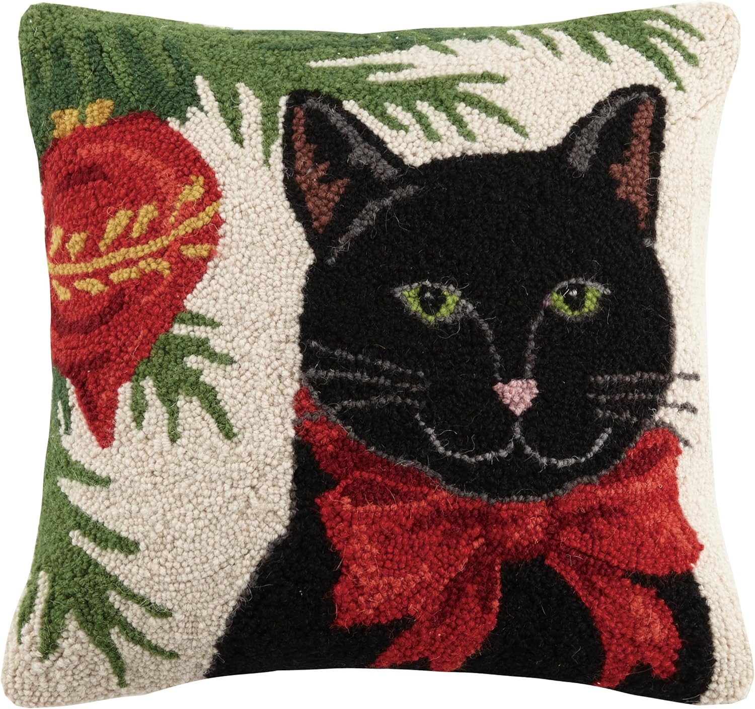 Mischievous Christmas Kitty Hooked Pillow Christmas Pillow