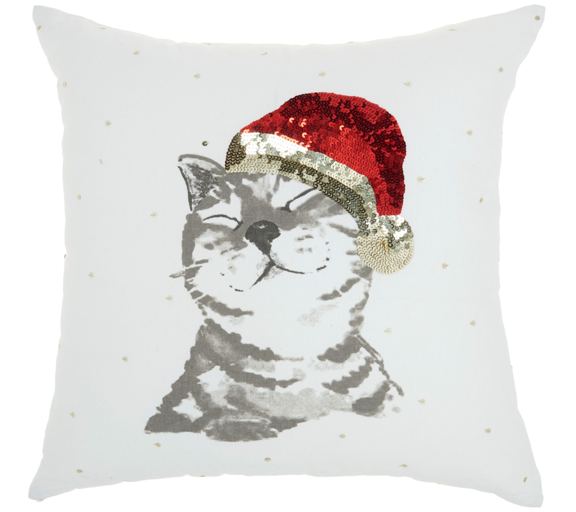 Nourison Holiday Cat White Christmas Throw Pillow Qvc Com