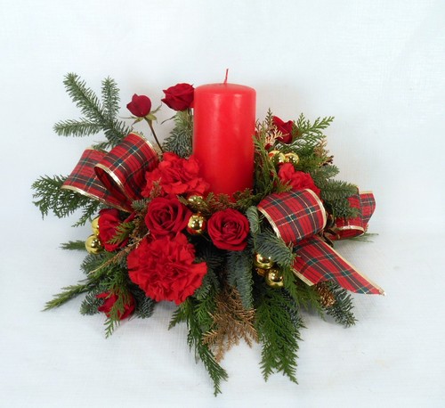 Red Pillar Candle Centerpiece Cc36aa Christmas Floral