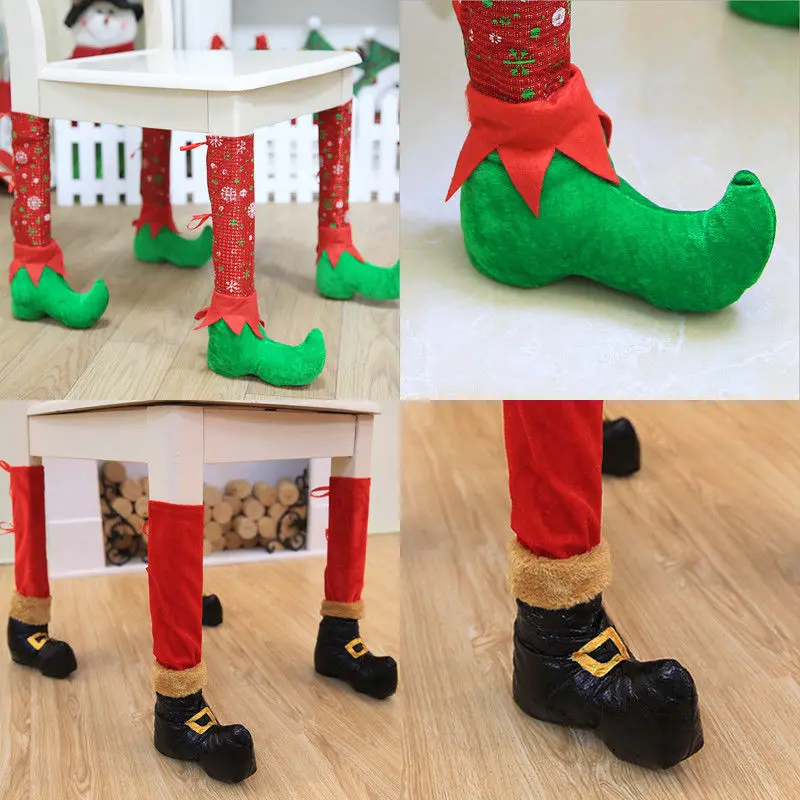 Christmas Chair Leg Covers Elf Elves Shoes Table Legs Cover