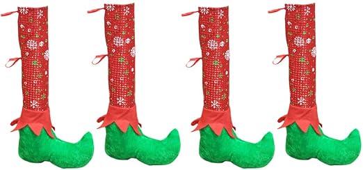 Marmoon 4 Pack Christmas Chair Leg Covers Elf Stocking Feet Shoes