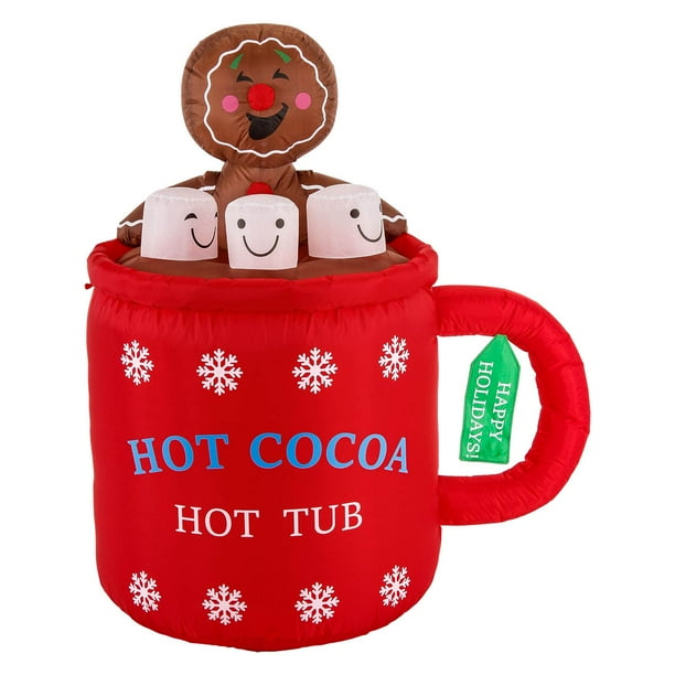 Christmas Masters 4ft Inflatable Hot Cocoa Mug Gingerbread Man
