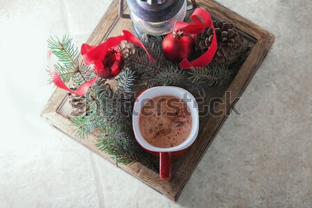 Christmas Cocoa In Mug On The Wooden Tray Stock Photo C Konstantin