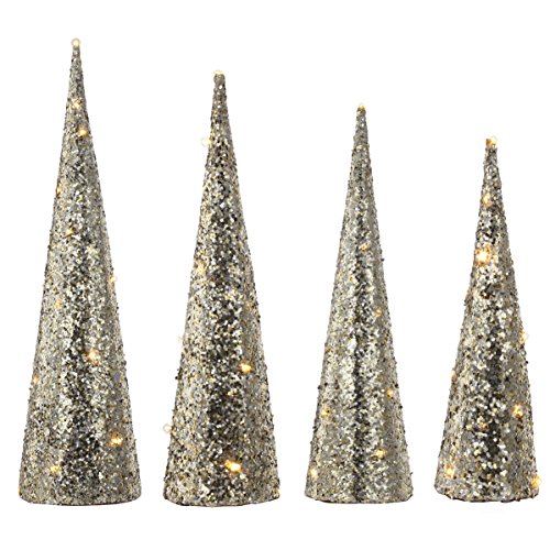 Set Of 4 Lighted Champagne Color Glitter Christmas Cone Trees 12 5