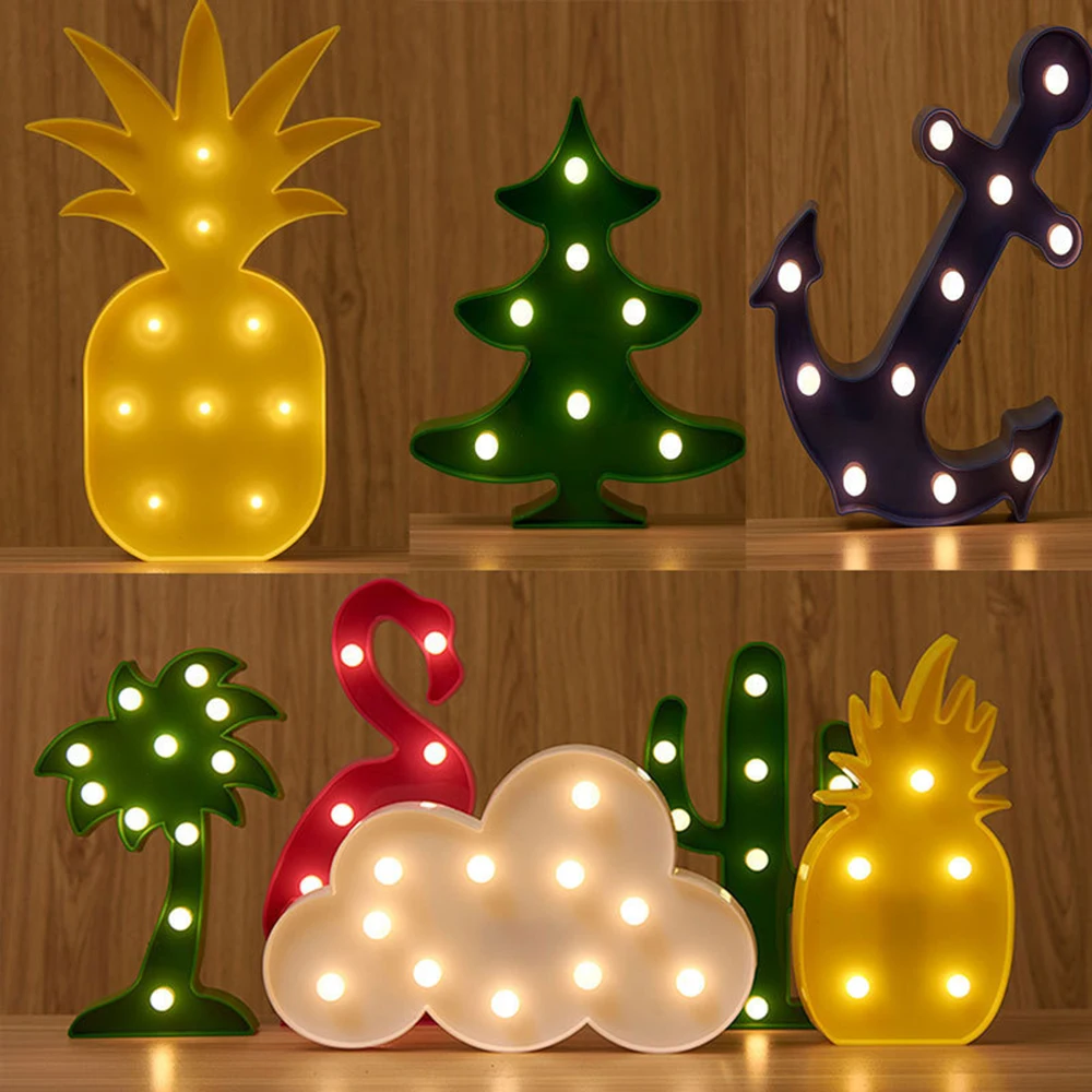 1pc Led Flamingo Lamp Pineapple Cactus Clouds Nightlight Romantic