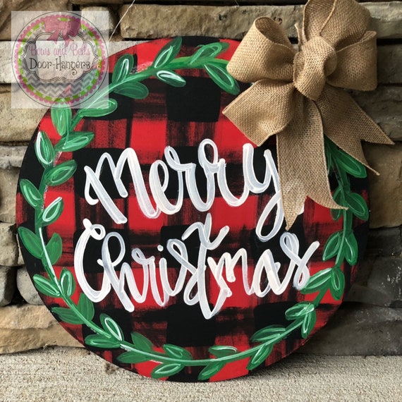 Christmas Door Hanger Christmas Wreath Gingham Christmas Etsy
