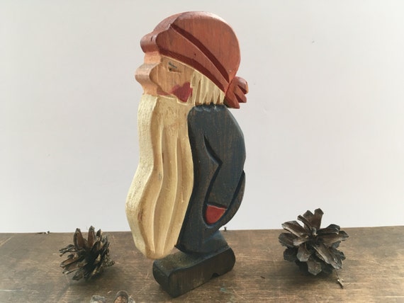 Vintage Carved Wood Elf Christmas Gnome Figurine Christmas Elf Etsy