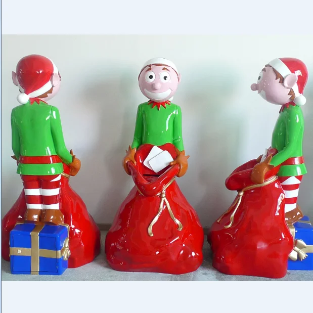 China Cute Ornaments Fiberglass Elf For Christmas Sculpture