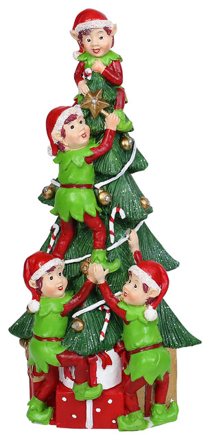 Alpine Corporation 12 In Christmas Tree And Stacked Elves Statue