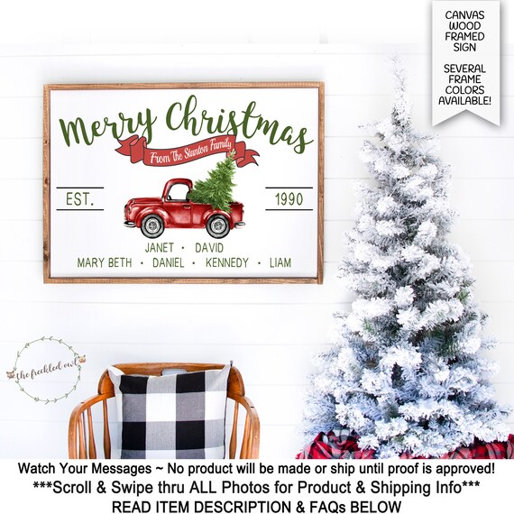 Merry Christmas Red Truck Christmas Farmhouse Wood Framed Sign 9