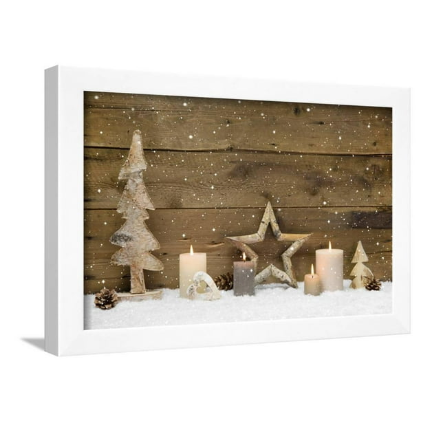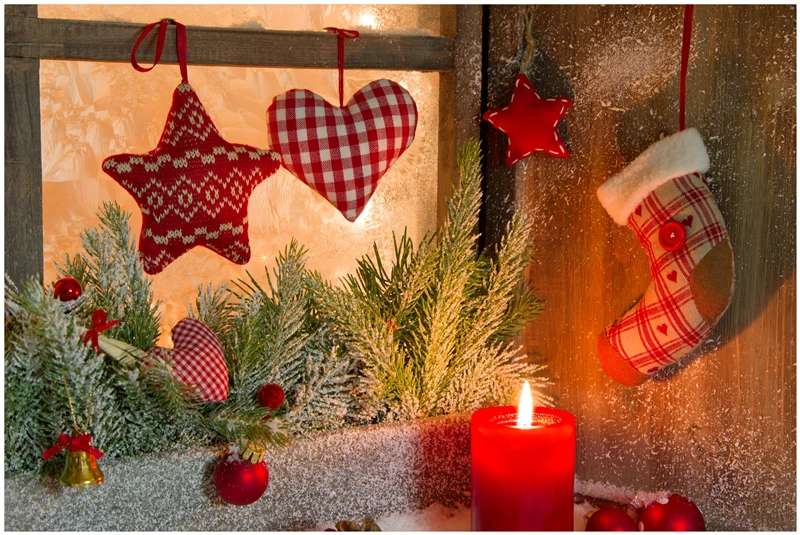 Rustic Country Background Wood With Candles And Snowflakes For