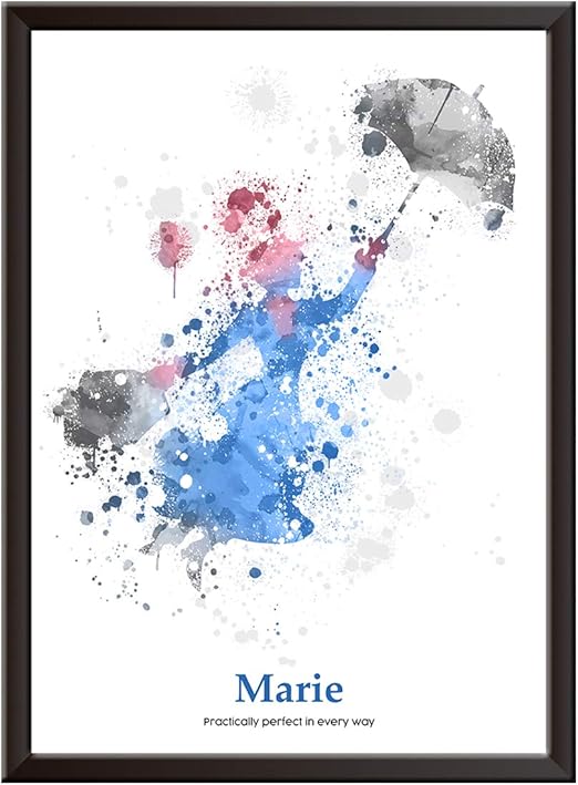 Personalised Mary Poppins Watercolour Styled Wall Art Print Girl