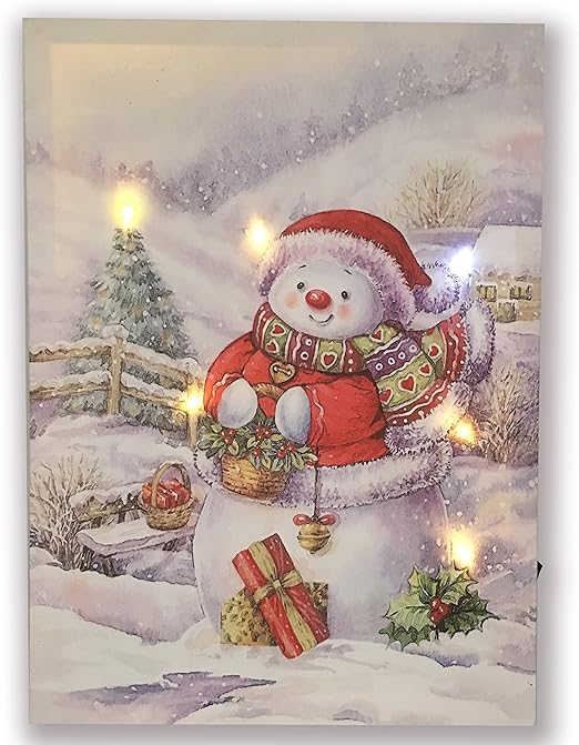 Led Canvas Art Christmas Snow Night Village House With Trees