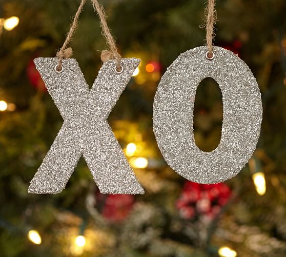 Silver German Glitter Letter Christmas Ornaments Pottery Barn