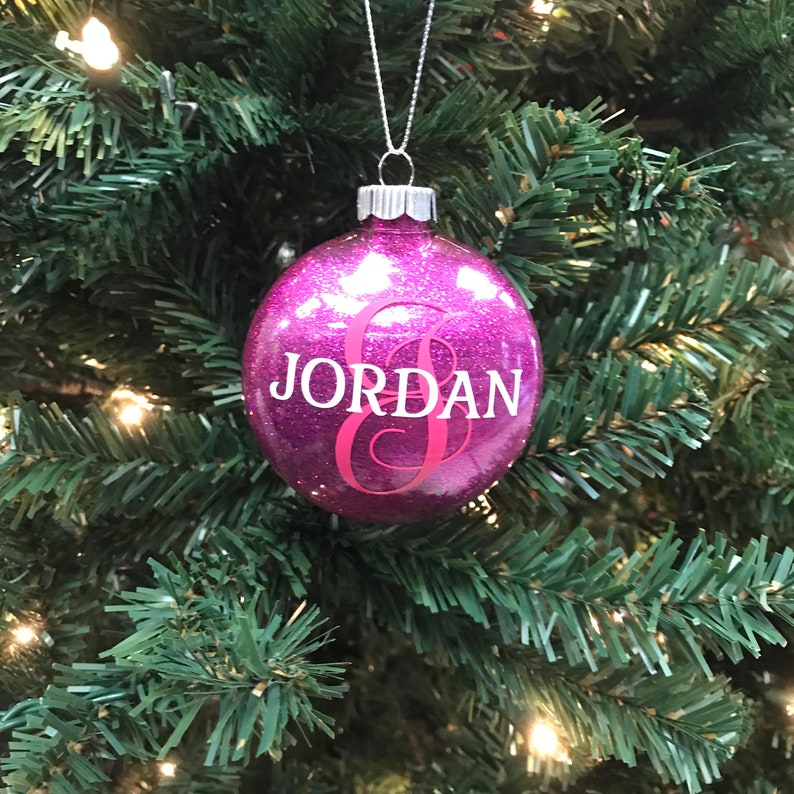 Monogram Ornament Glitter Personalized Christmas Ornament Etsy