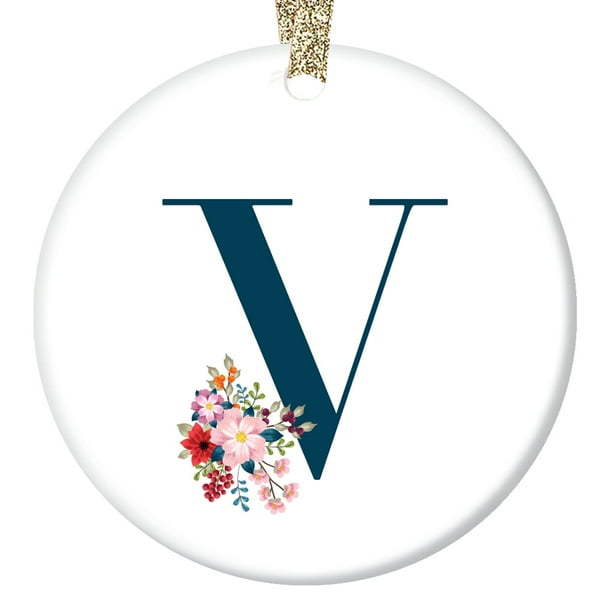 Name Monogram Ornament Letter V Christmas Present For Lady Teacher