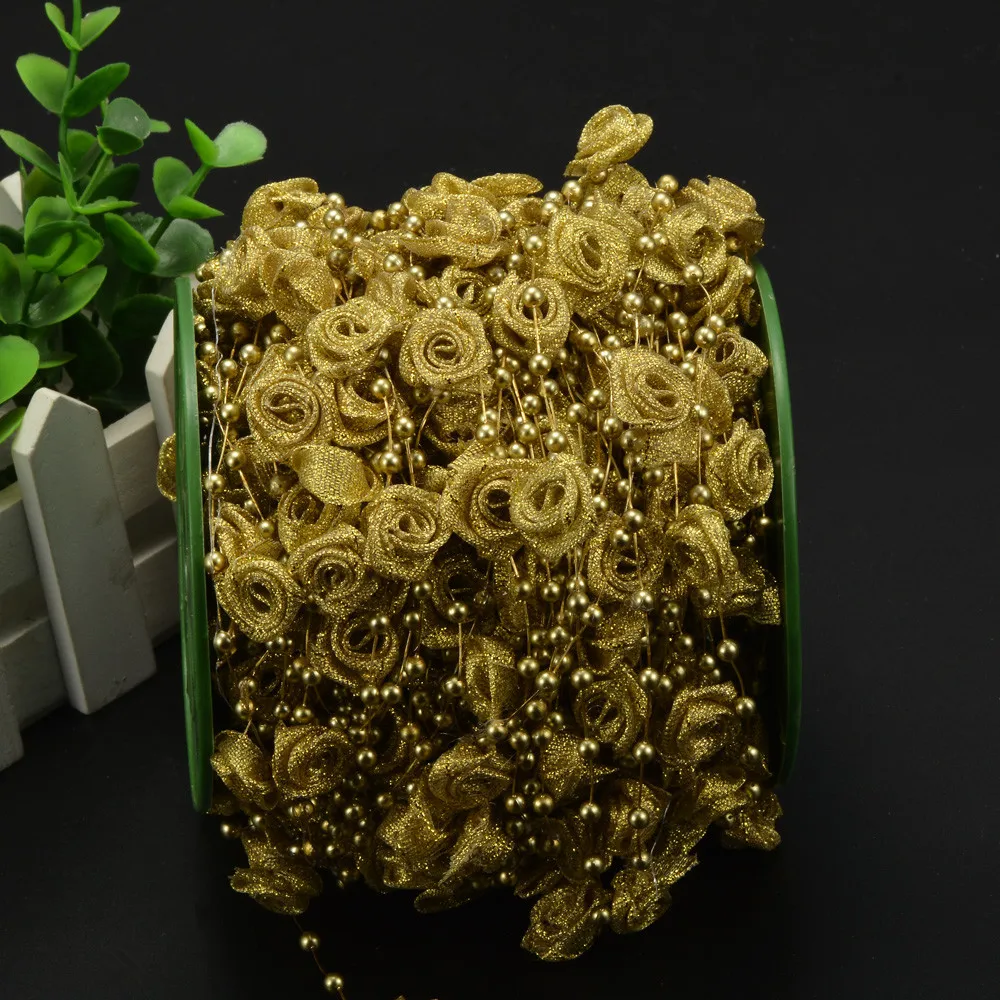 New 10m Gold Fishing Line Artificial Pearls Flower Beads Chain