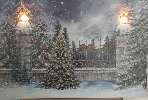 Lighted Canvas Snow Scenesnow Scene With Large Gatechristmas Etsy