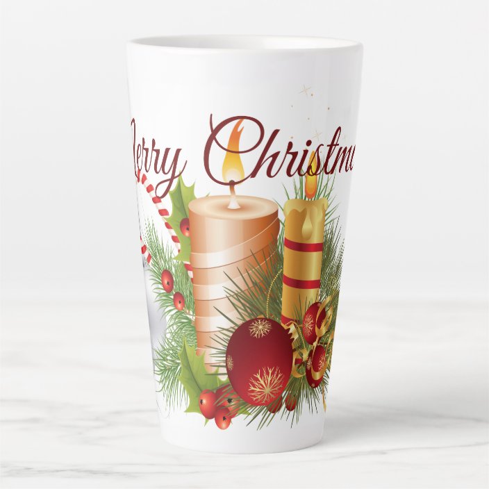 Candles Ornaments Pine Merry Christmas Latte Mug Zazzle Com