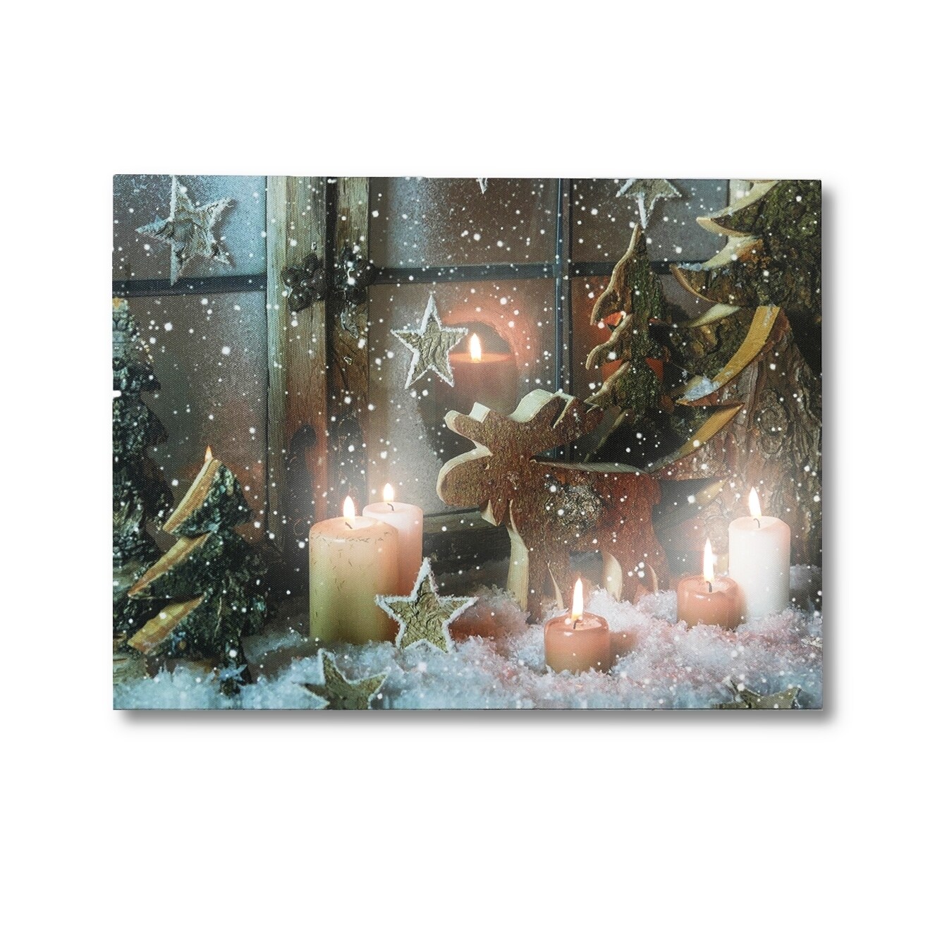Nikky Home Christmas Light Deer Candles Led Canvas Wall Art For