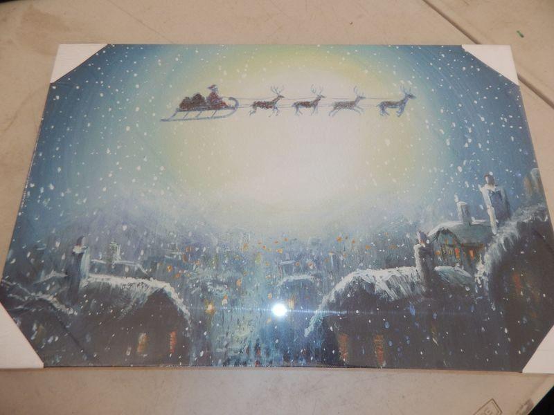 Large Christmas Canvas Led Wall Art Winter Painting 24x16 Inches
