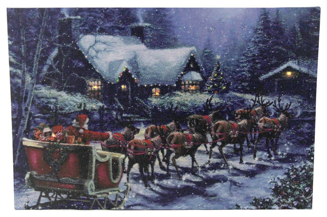 Led Lighted Santa Claus In Sleigh Christmas Canvas Wall Art 15 75