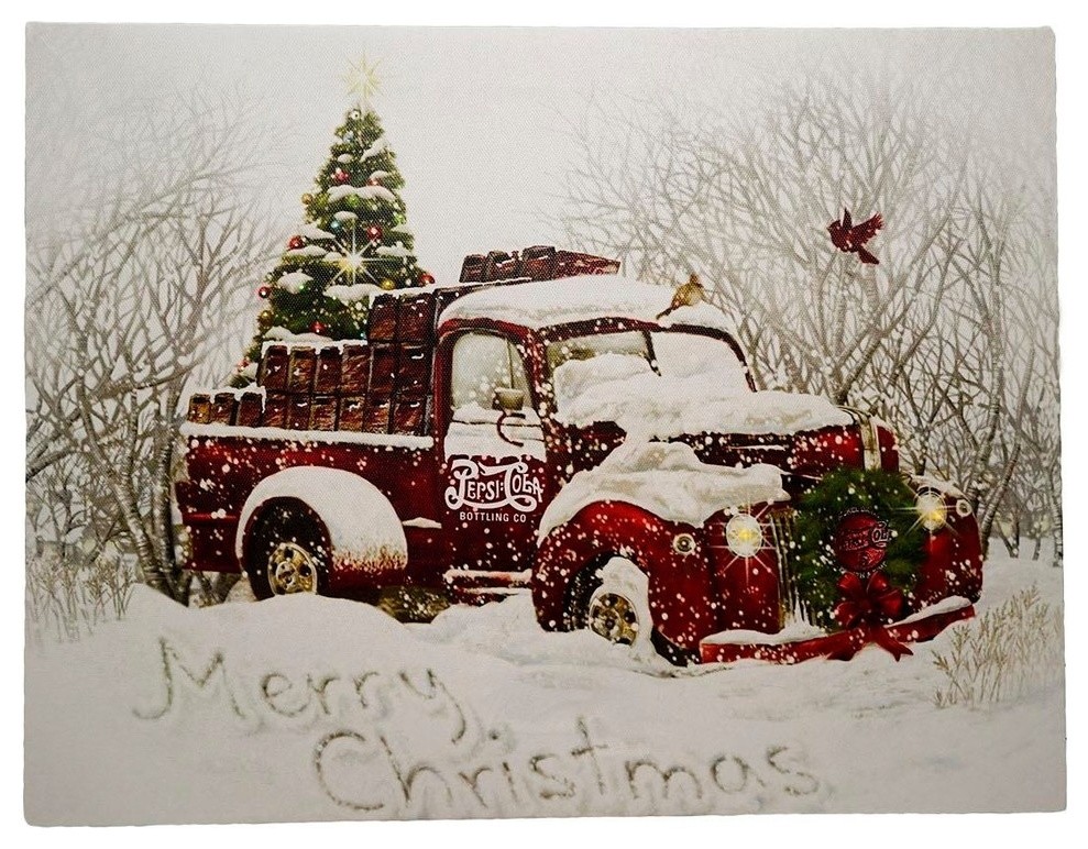 Led Lighted Merry Christmas Pepsi Cola Delivery Truck Canvas Wall