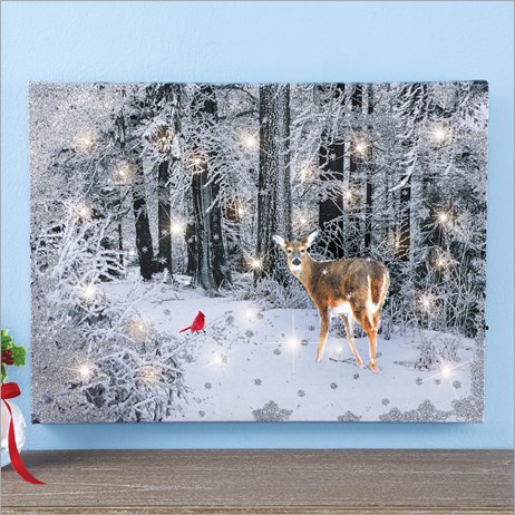 Lighted Deer Glittered Canvas Wall Art Collections Etc
